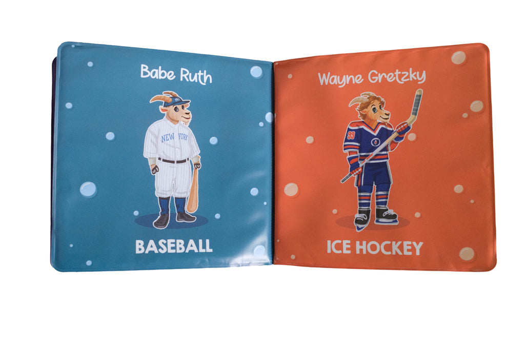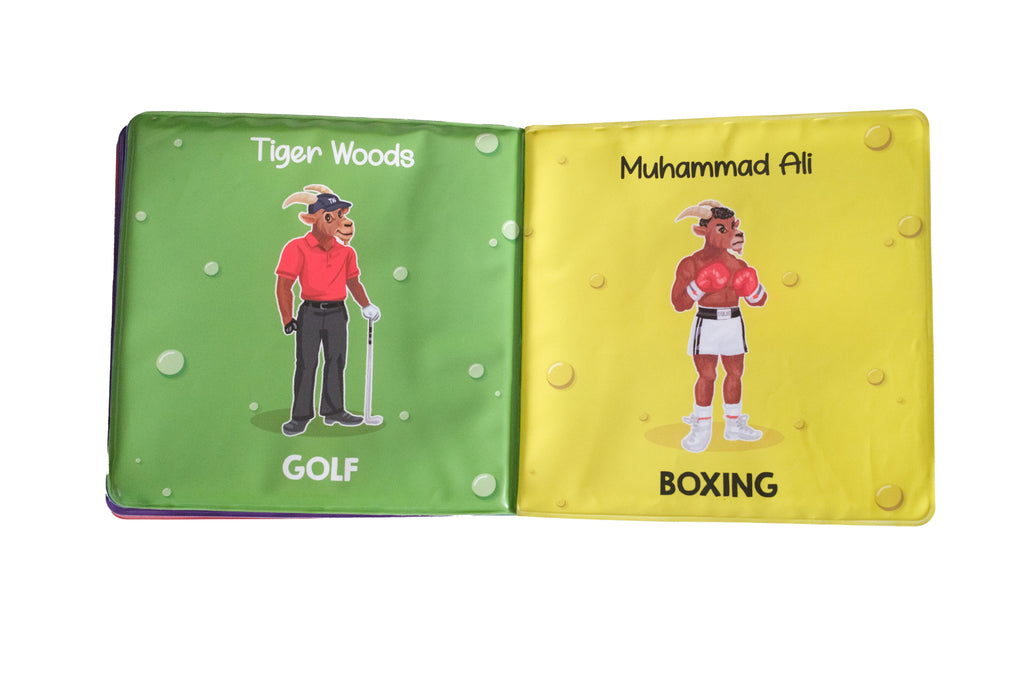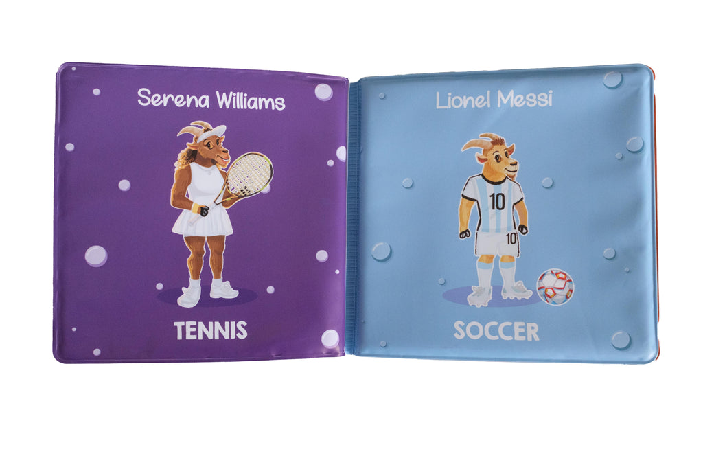 Turn bath time into GOAT time with The GOAT Academy Bath Book β a waterproof, baby-safe book designed to inspire little champions from their very first bubbles. Made from soft, non-toxic materials, this durable bath book introduces babies and toddlers to the world of The GOAT Series, featuring fun, colorful illustrations of legendary athletes reimagined as playful GOATs.